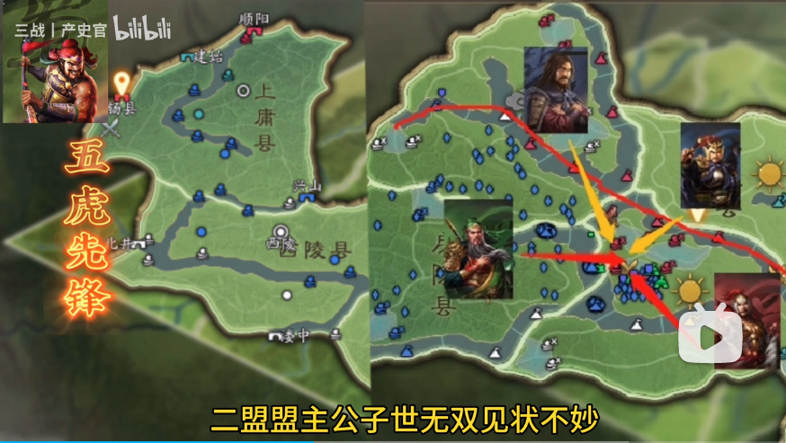 4月12号晚,远在汉中的五虎先锋突然拿下钖县,杀入南郡,襄阳前线战事吃紧,后方又有外敌来犯,二盟盟主公子世无双见状不妙,组织云起龙骧兵分两路,小部队直奔钖县附近布局防守,做好与五虎交战的准备,主力部队从上庸走水路北上,4月14日抵达南郡与南阳关口,准备拿下建始,偷袭豫州后方南阳。