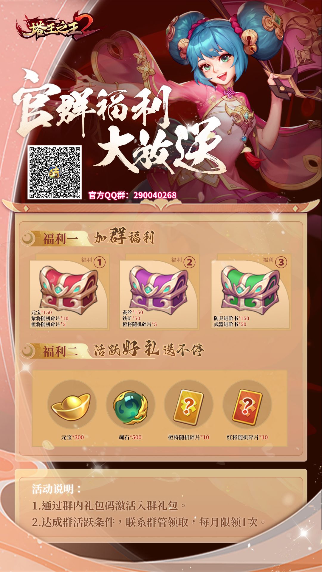 诚挚邀请所有塔王之王2的主公加入咱们的官方交流Q群,群号:290040268或扫码↓进群