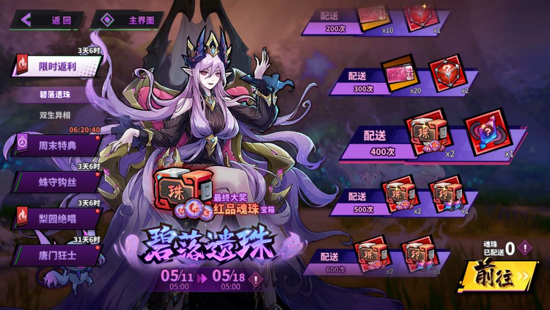 活动期间,在魂珠配送卡池消耗配送道具,完成配送任务即可领取奖励。