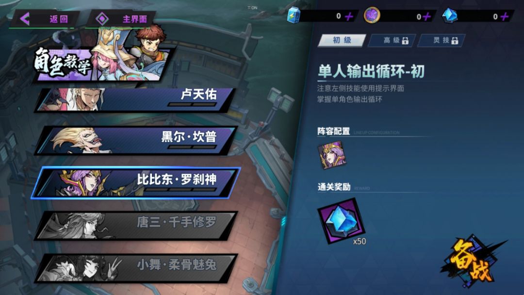 关卡入口:主界面战斗——【冥界轶闻】——【死魂岛】——【角色教学】。