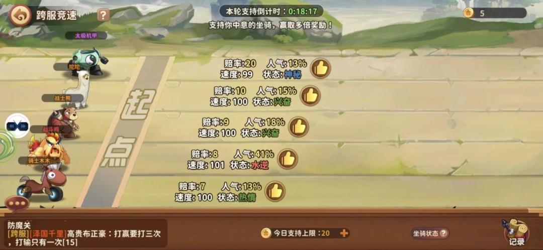 五一假期,游戏开启了新的【坐骑】玩法,其中我最感兴趣,是跨服竞猜玩法