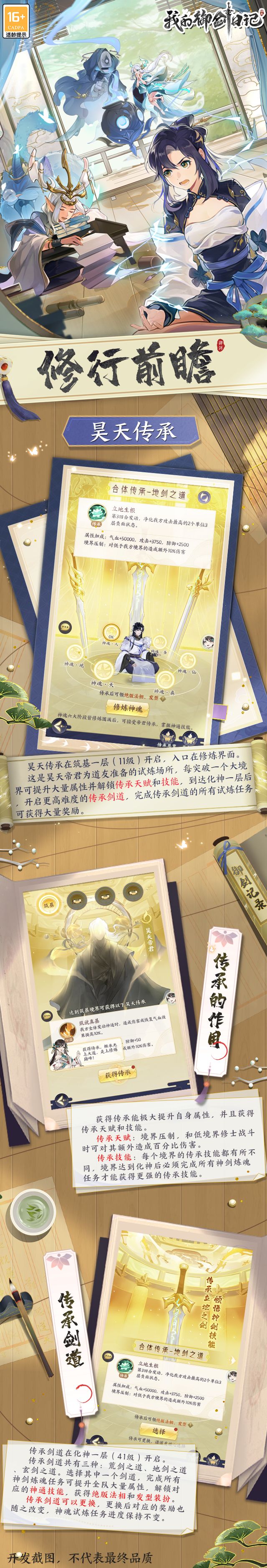 这是昊天帝君为道友准备的试炼场所,每突破一个大境界可提升大量属性并解锁传承天赋和技能,到达化神一层后,开启更高难度的传承剑道,需要完成传承剑道的所有试炼任务方可获得大量奖励。