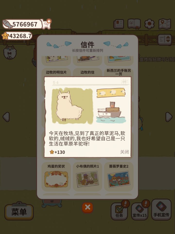 图1:新西兰的手账一页 获取后能解锁羊驼 (概率低)