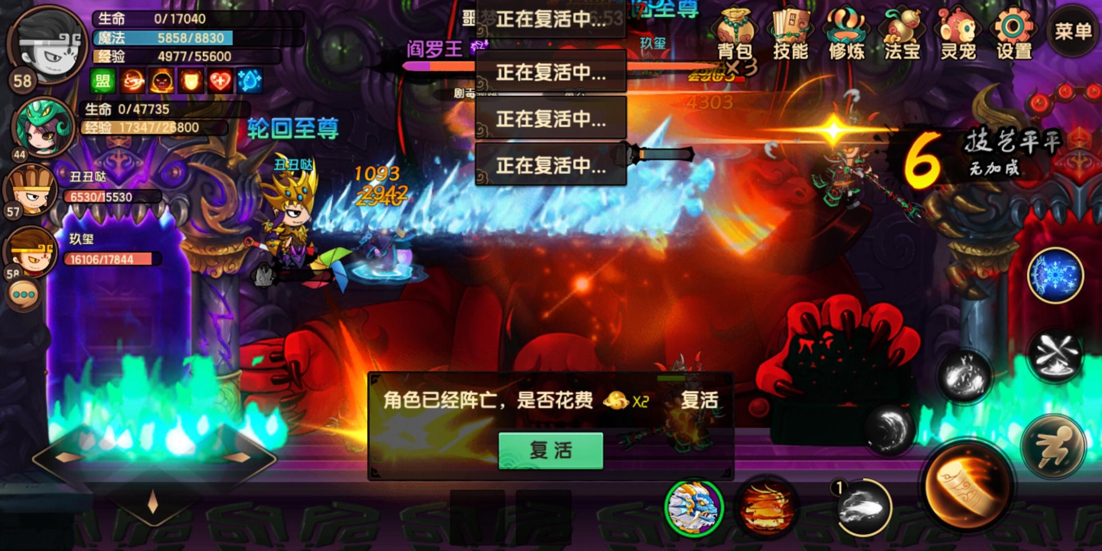 噩梦无法复活,点复活显示正在复活中,点了好几下都没复活成功,下游戏重新登录,我还是没有复活,背包里的11个复活丹都没有了,我存了好久的呀