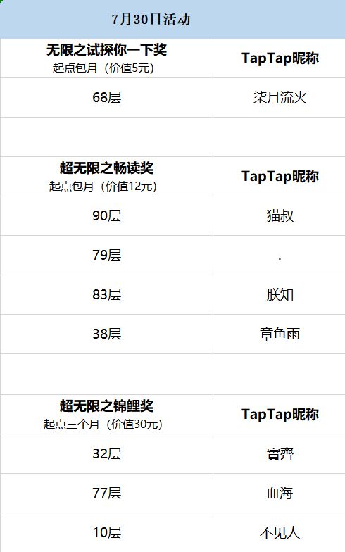 感谢每个人的参与~~~~特别是用心写推荐的小伙伴。![[嗒啦啦2_突然出现]](https://img-tc.tapimg.com/market/images/0da85c57f1663308aa211bc92a830af8.gif)