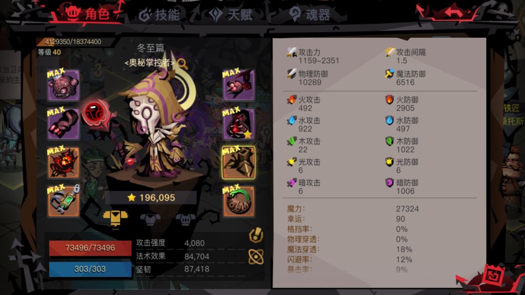 我发现很多萌新前期很容易走弯路啊,就拿很多人发些装备在那里问能不能用啊什么的。三职业都要选生命词条,前期不玩什么套路的还是正常的大剑选大攻,剑盾选光攻,法师选魔力(前期不要选元素攻抗),这里简单说一下我自己的前期过渡方法,我本人是比较推荐法师这个职业的,三职业各有各的好,但你不得不承认剑盾前期真的很难玩,耗蓝的输出在单人刷图都是个问题,而且玩好剑盾还需要一定盾反基础,我当初是为了练盾反学了一周才能上手,我个人的建议是:时光之门选大剑,大剑这个职业真的无脑,对于前期回血主靠嗑药的来说这个职业真的适合萌新,装备肯定是血量大攻不必多说,到了180层,就可以考虑转法师了,而且35套提供的坦度也可以顺利渡过前中期法师所需的血量,我的建议是弄出四件套,这四件一定要全身魔力生命,精炼的话看个人了,毕竟还是很费金币的事,八件装备已经定下来了四件,法杖随时换,因为不同等级的法杖差距真的不小,戒指项链的话我比较倾向37暗金,毕竟38也没什么太大提升。接下来就是重点了:一定一定要找个高级工会加上,最好是280级左右的,每天把钻石攒完,不要乱花,高级工会住两周就够点科技的了,点物抗和魔力生命,高级工会可以提供两万多生命和五千左右的魔力,前期就直接逆天,真的堪比氪佬,我现在是35四件套一直用到精英图一,35套很顶,就算不能像我一样过了普通图一,过个沙眼还是轻轻松松,下面放上属性图(因为是回归 所以星痕很差,大佬轻喷)