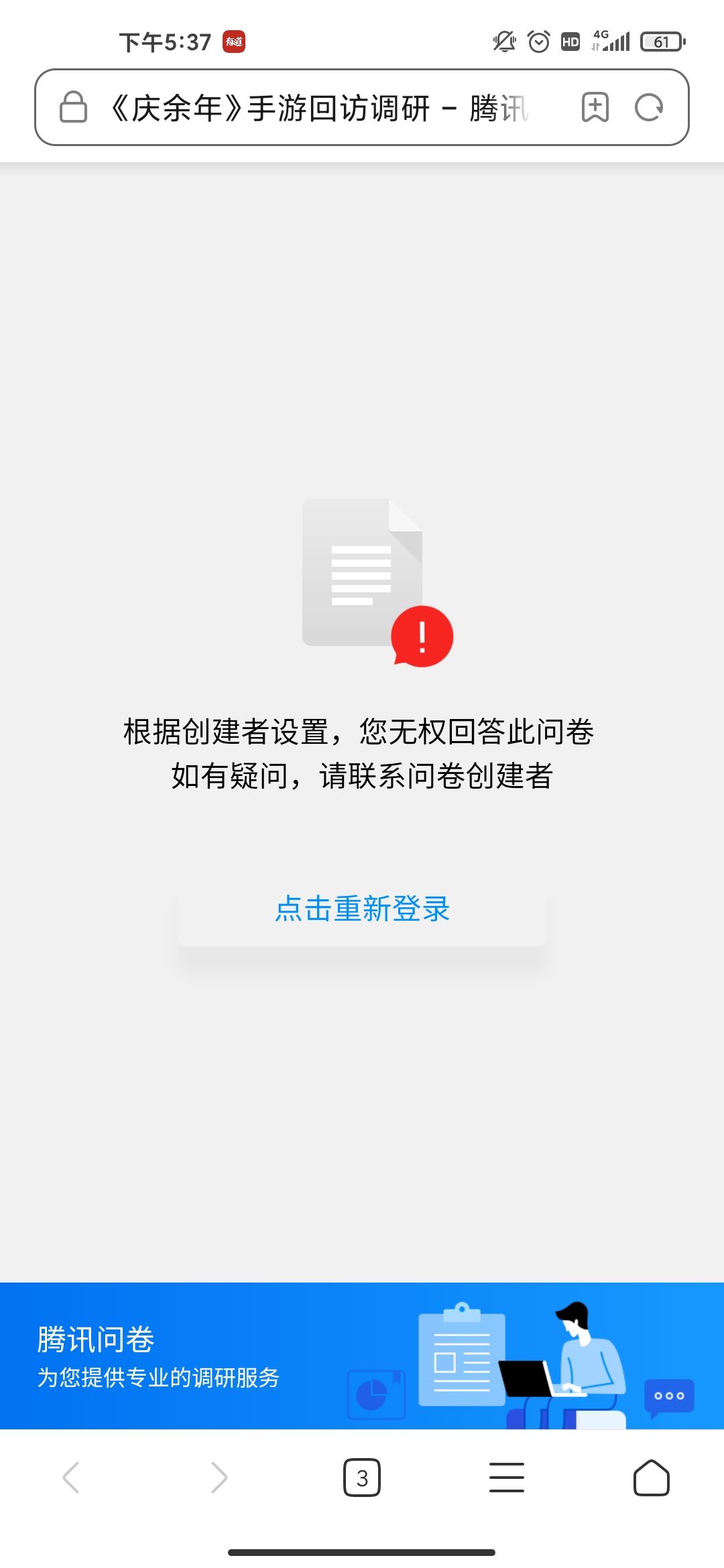 给我发短信让我参与调研,结果点进去说我无权回答问卷???