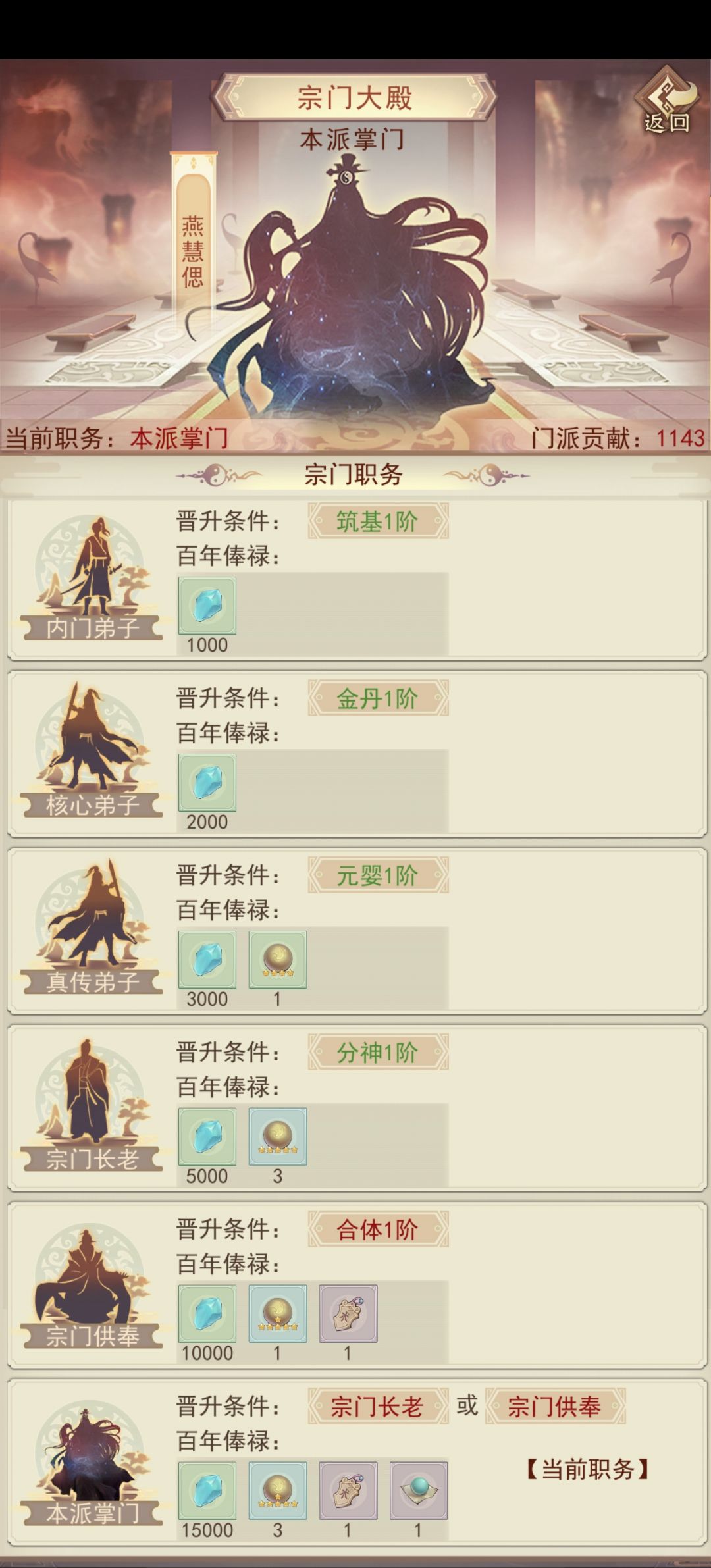 5、每天记得把门派事务做了有贡献,有实力的记得挂门派十大高手,有工资。