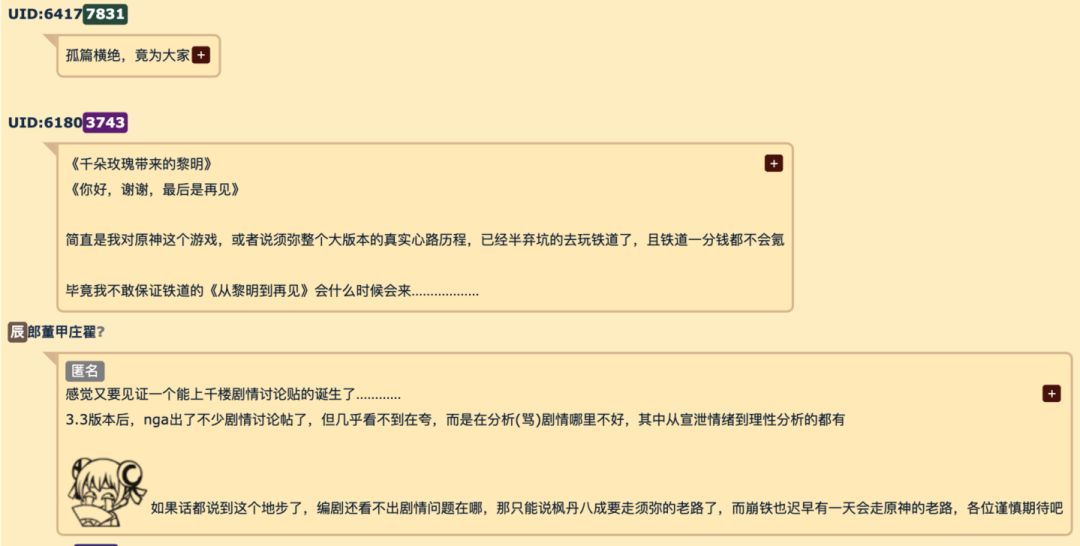 可悲的是,我对米哈游的文案只能先怀疑,再怀疑,永远保持怀疑了。现在想起《千朵玫瑰带来的黎明》,想起《你好,谢谢,最后是再见》,真的像是恍如隔世啊。
