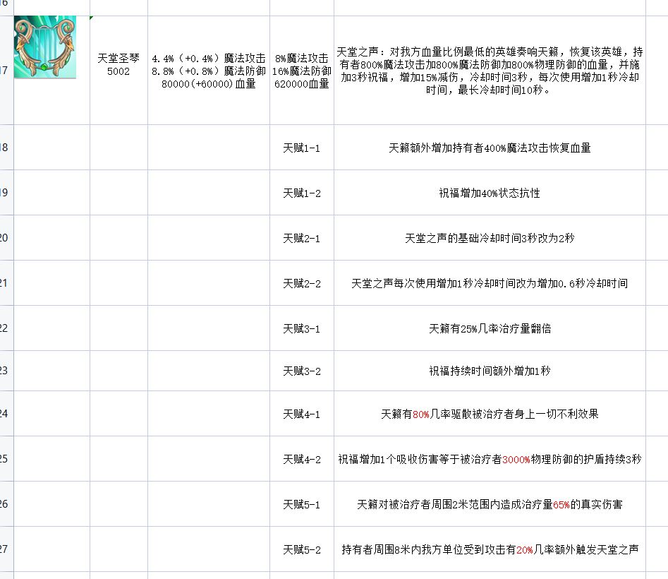 天堂圣琴部分天赋加强