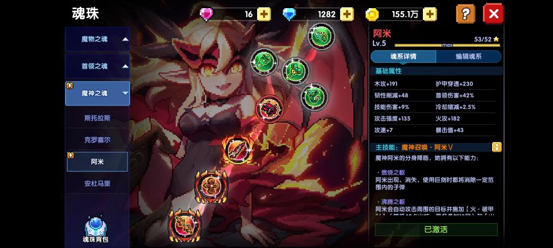 魂珠:2颗阿米+芙蕾雅的罪责魂珠+火系魂珠+4颗安度马里/卡茜莫拉尔(高贵的首领伤害魂珠)