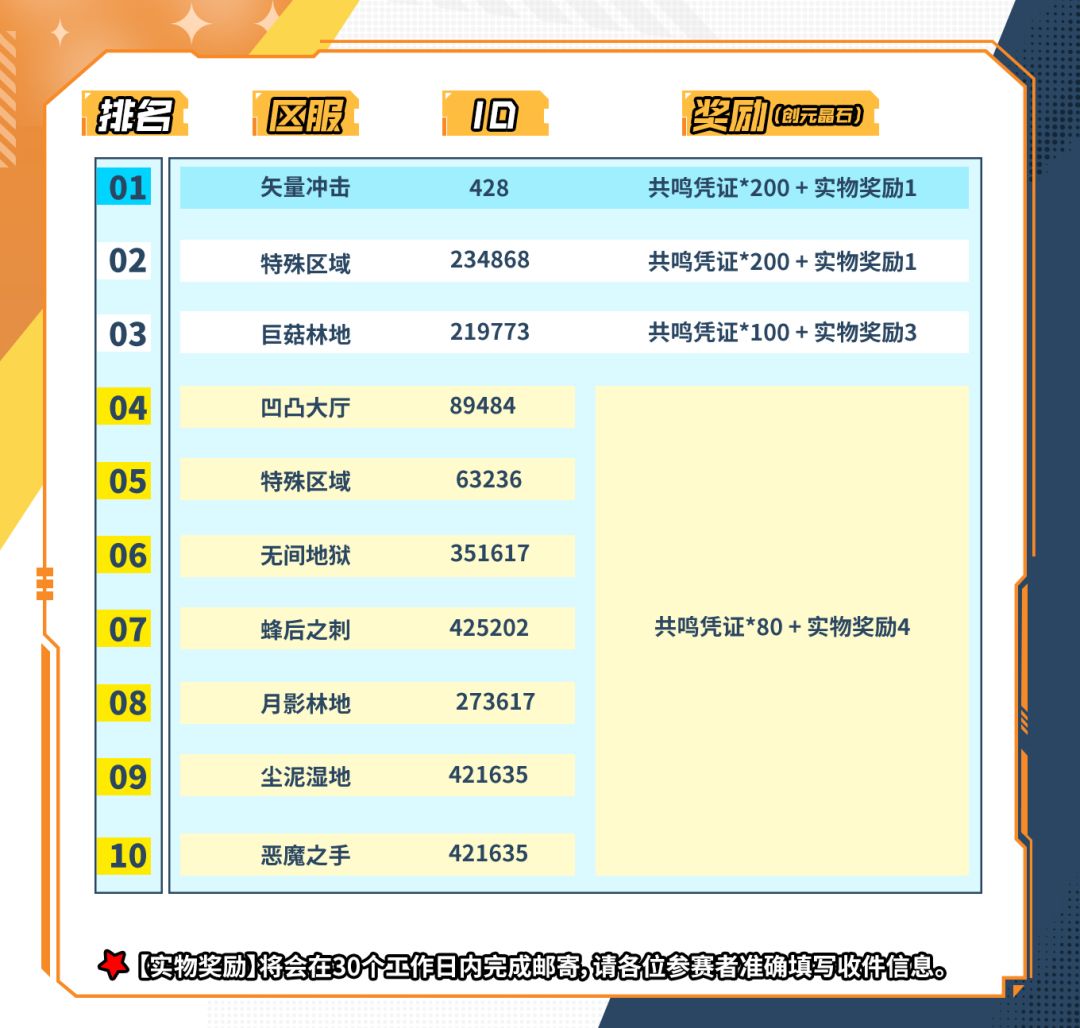 2、【共鸣凭证】奖励将会在14个工作日内发放至各位参赛者的角色邮箱;