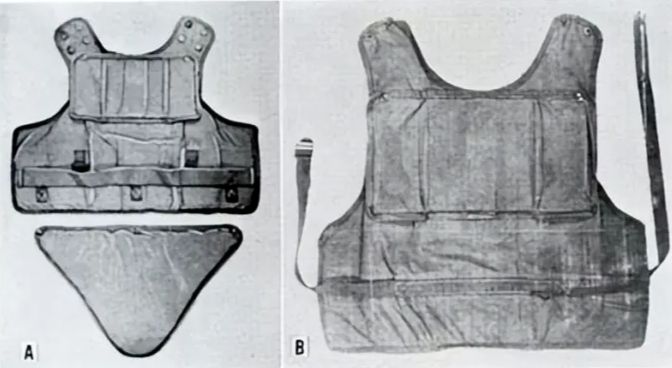 于是在二战末期,军队开始列装内置防弹金属板的防弹背心,如美军使用的M12防破片衣。这种防弹衣将金属板缝制在尼龙材料中,既能保护核心部位,又不影响士兵行动。