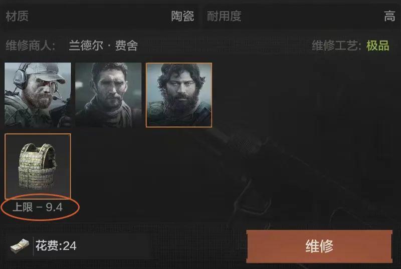 陶瓷材质的防弹衣每次维修都会损失较多耐久上限
