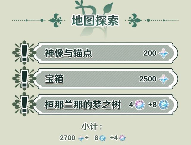 我们当下所处的3.6版本,同样由于新地图的开放带来了不菲的探索奖励,最终可获得原石总量较为可观。