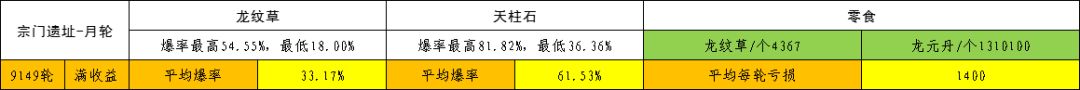 普通 10个龙元(总计2000功德)+100仙桃+300龙纹草。龙纹草刷月轮掉率大概是1/3,300龙纹草则需要900轮左右,每轮亏损大概1400零食,总计126w灵石