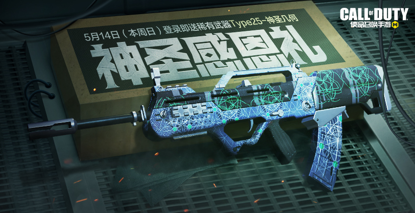 5月11日,神圣感恩礼即将来袭,战士们参与预约,即可在5月14日登录时,领取稀有级武器:Type25-神圣几何。
