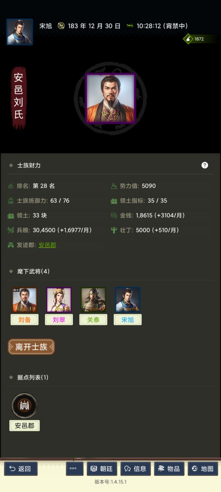 图1.2.3.是文将。图1,是加入了刘备氏族,他还没有成立势力,我算是原始股东了。刘备就4个人。关泰也是个玩家。他来的比我早。
