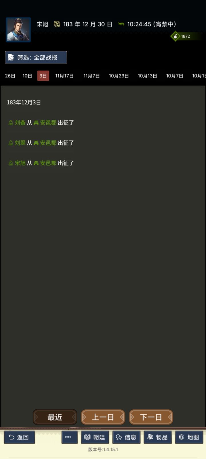 图3是刘备打仗带着我。相当于完全托管。自己每天都可以接受朝廷建设土地的任务。然后当朝廷的官。氏族建设完全不用管。
