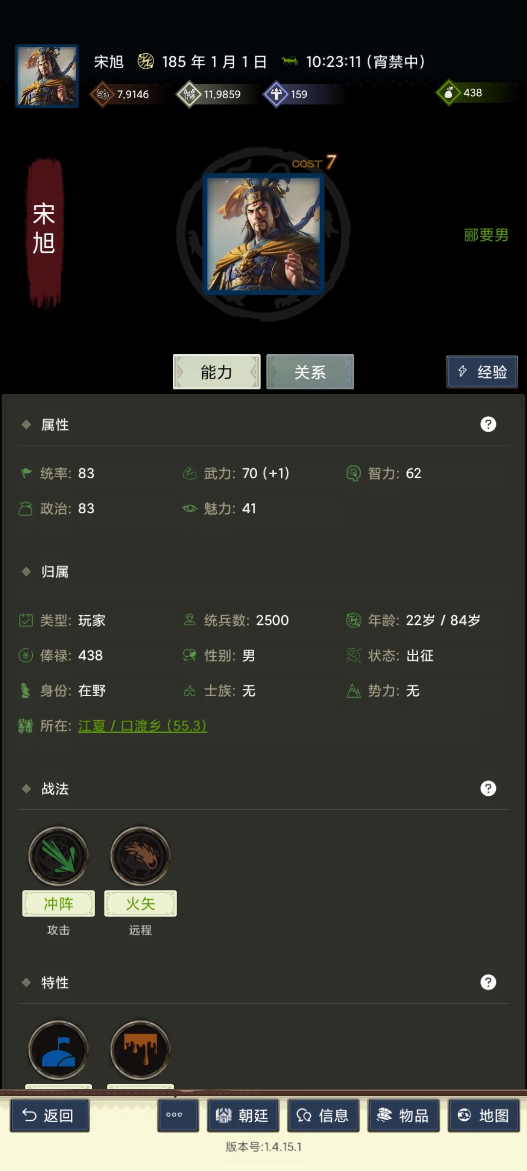 图4,5,6是武将号,武将号玩的好要做朝廷发展氏族任务。先看一下位置和粮食,还有土地最大占有,一定要有空位。如果有空位在加上钱,粮充足,你就可以加入了。加入后可以控制所有人和事,先点开图5征兵。重点是族兵和壮丁。把壮丁变族兵。族兵就是你的兵。等会打仗要用,所以越多越好。
