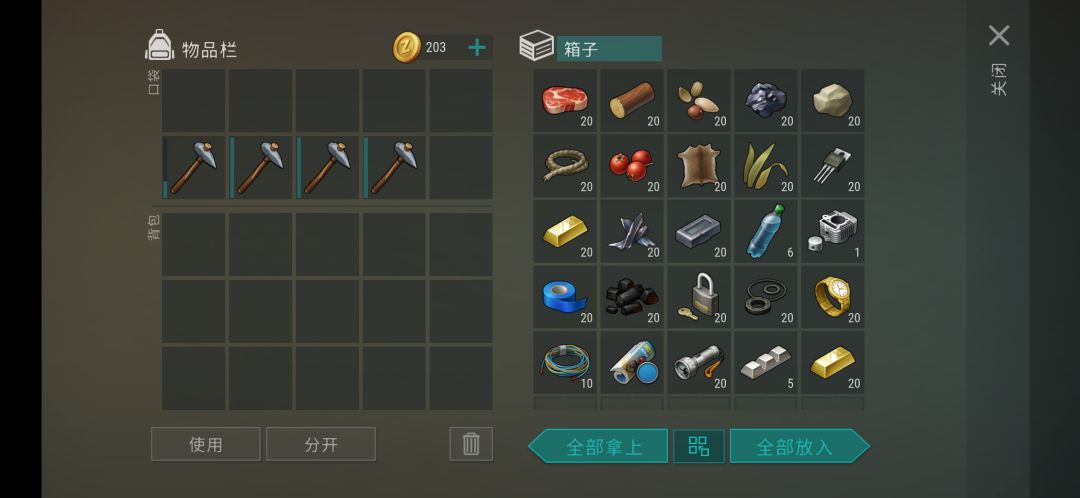 建议携带:5铁斧4石斧