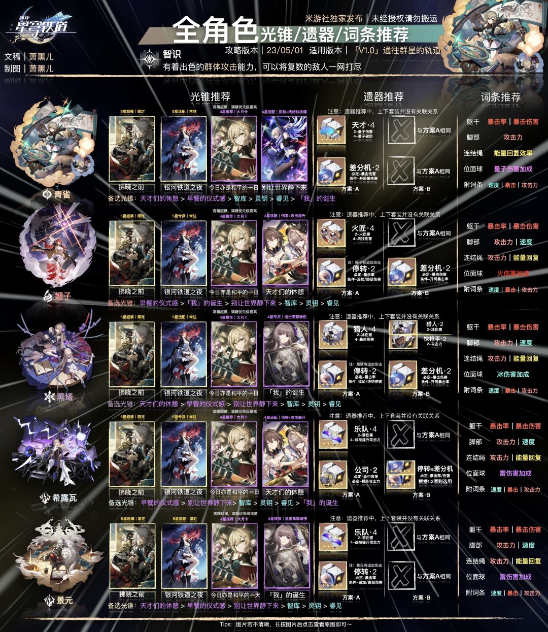 1. 根据公测调整,修改了所有「智识」角色的位面球和连结绳的推荐。