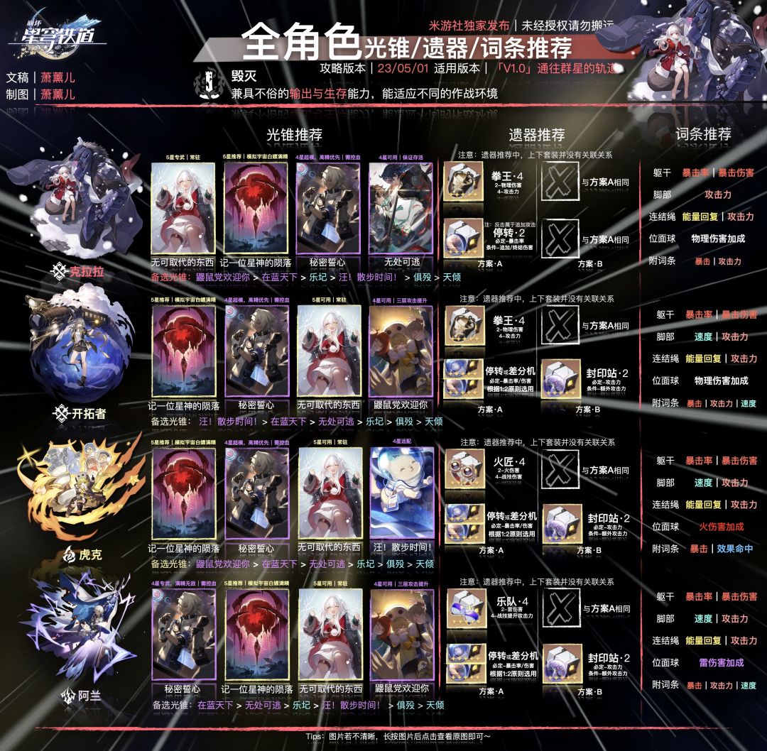 「V1.0攻略」全角色一图流搭配推荐|第一次修订版