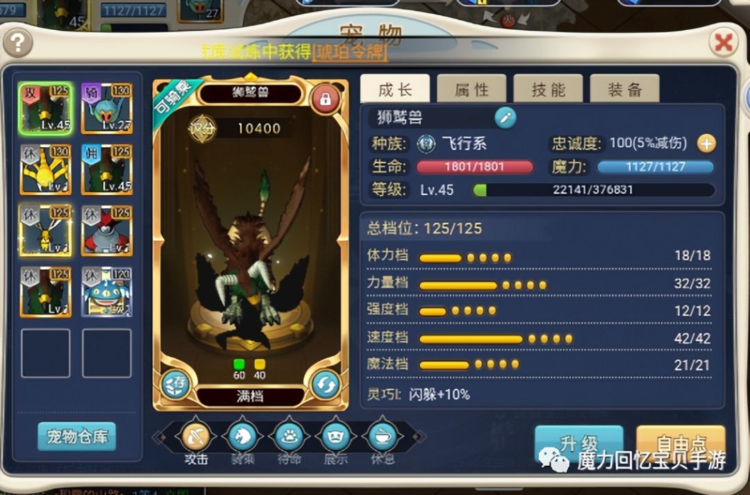 宠物档位影响宠物每次升级时,基础属性的成长幅度。可以使用再生水晶提高宠物档次至当前档位阶段满档。