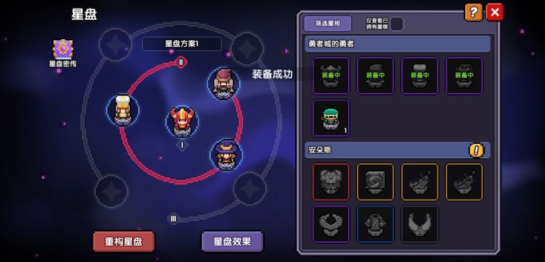 星盘开启:先放入一环和二环共4个勇者棋子激活效果,到冒险页面左下角的星界征途领取奖励