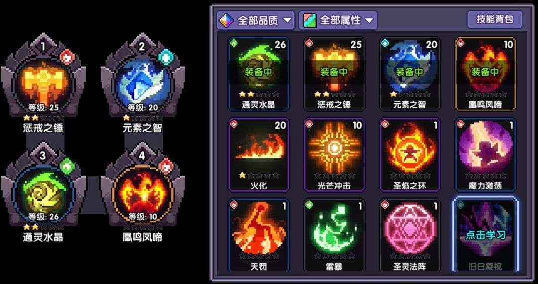 开荒神技,群怪用通灵水晶,单体兼群怪用鸡你太美或者雷暴/天罚,回蓝靠惩戒之锤,增伤可以用元素之智、火化