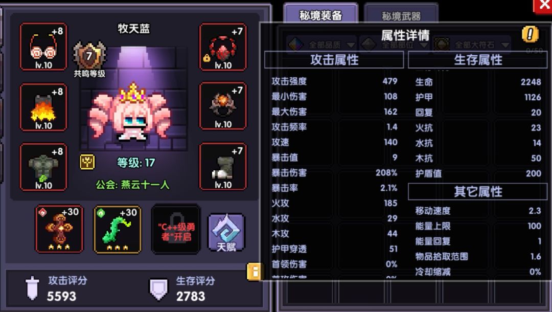 总结:开荒第二天,护甲穿透要超过关卡显示的BOSS护甲值,暗金装备给予的增益效果选好了提升很大