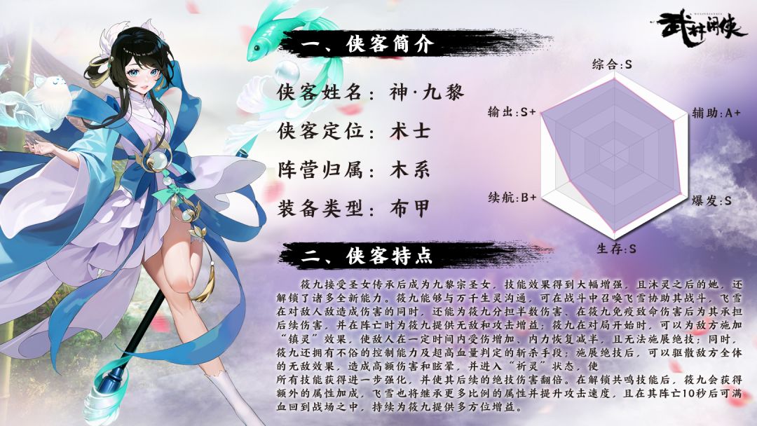 【玄天星降】:侠客登场时,提升友方全体侠客3%最终伤害(该效果可叠加)。
