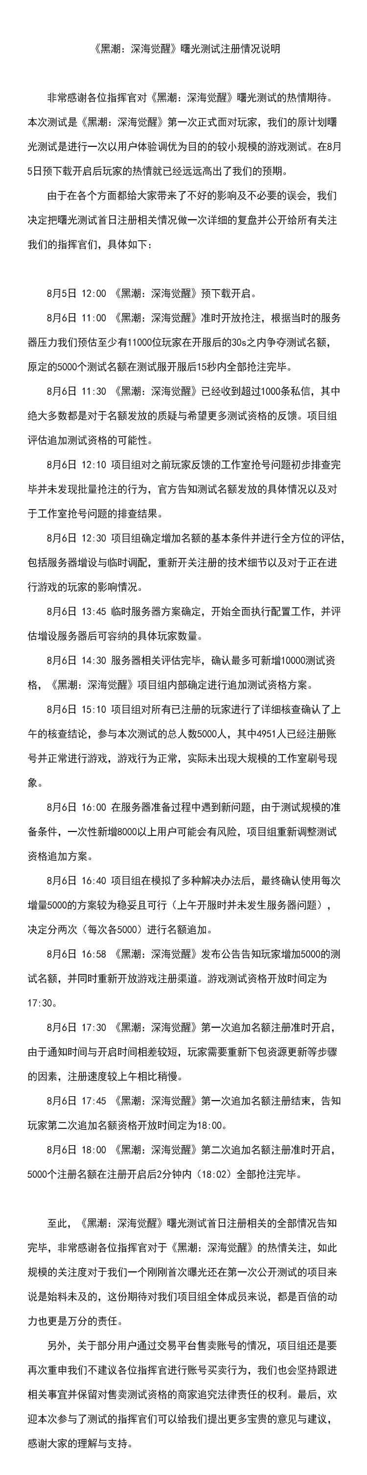 《黑潮:深海觉醒》曙光测试注册情况说明