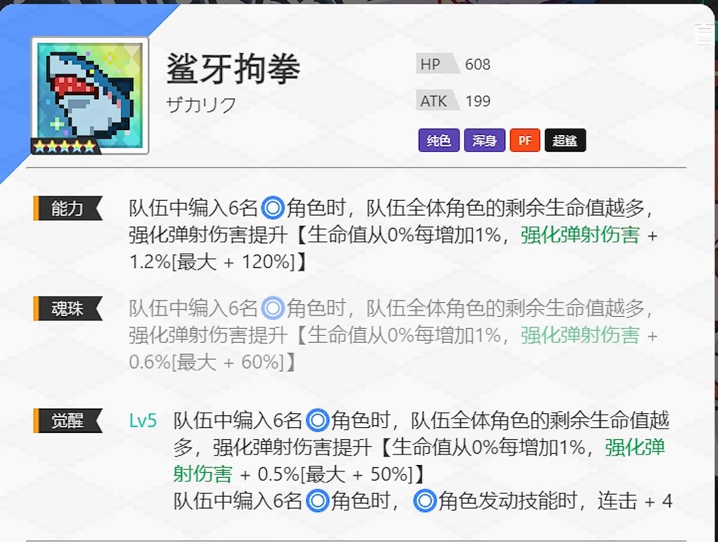纯色水PF的武器,要求六水同时还有浑身要求可谓门槛颇高,比较之下更加适合礼鱼fever中使用,开局进入fever对于两个门槛都能较为轻松地满足