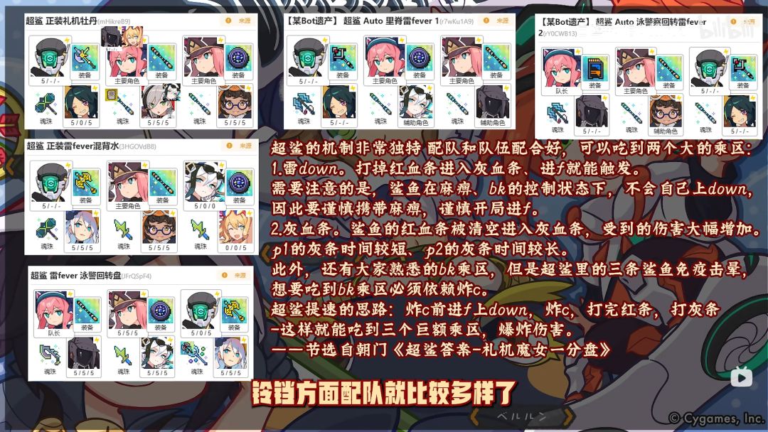 由于进入fever会给攻击力buff药所以推荐共斗至少有一个雷fever,礼机和斩铁的区别在于,礼机进入fever即可回复技能条的爆发非常高,斩铁队长的优势则是释放技能拉fever会使得进入fever的周期更短,各有优劣可根据自己box和队友进行选择