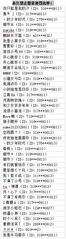 >>本期(2023年4月25日—5月8日)处罚名单,共计272名玩家,部分名单公示如下: