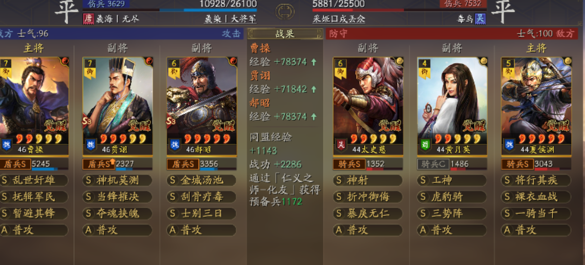 被克制的情况下,贾诩也能有一个不错的输出,可以看到郝昭奶了1.2w,还能输出七千。