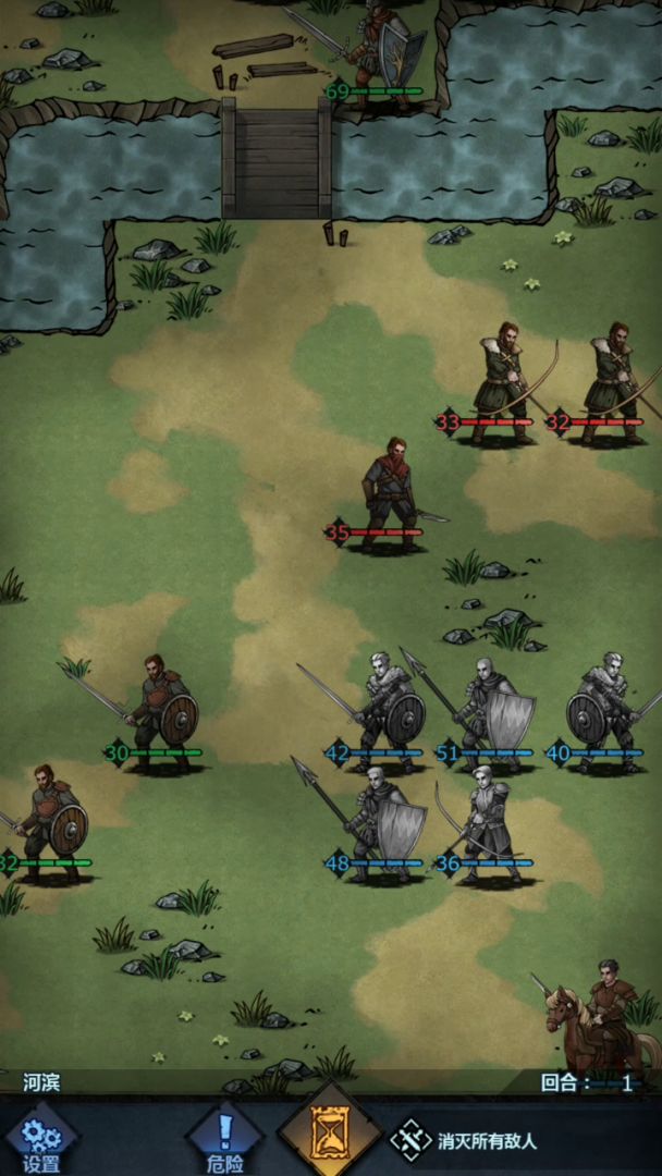 在把能转职的都转职了过后,把系统送的装备和通关装备穿一穿,再点武器商店和护具商店更新装备。勇士单手剑+盾,方阵步兵长枪+盾,弓箭手自然是弓。