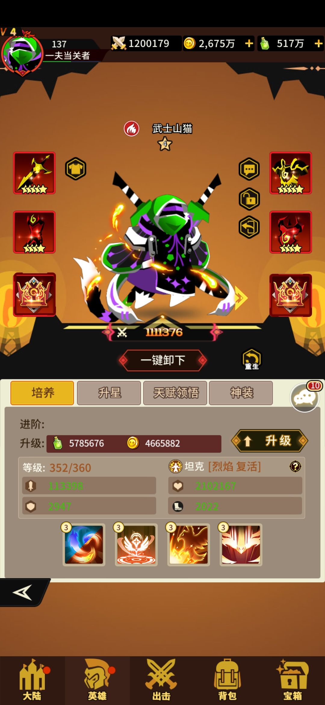 前期单核山猫yyds 及其容易培养 本体获取容易 对阵光暗也没问题 一般情况会高于平均星级2-3星 且前期PK 争排行榜 跨服 强 实现利滚利