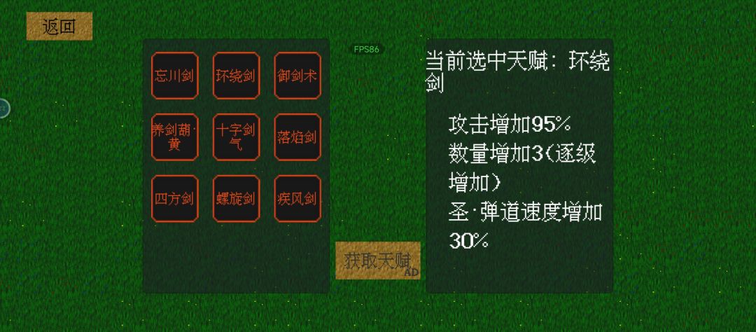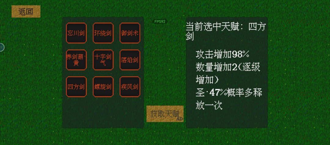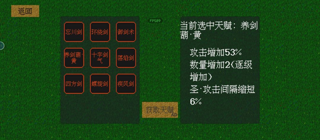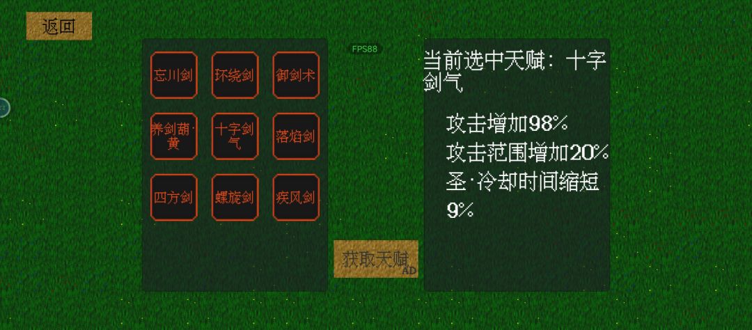 最后是我个人推荐喜欢的武器——十字剑气。武器本身属性,加上天赋后,伤害高高,范围广,安全感满满附近的近攻妖怪在前中期基本近不了身,可以安心发育。