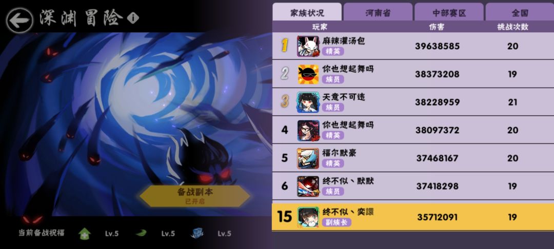 家族战排名前五,招募大佬咯。