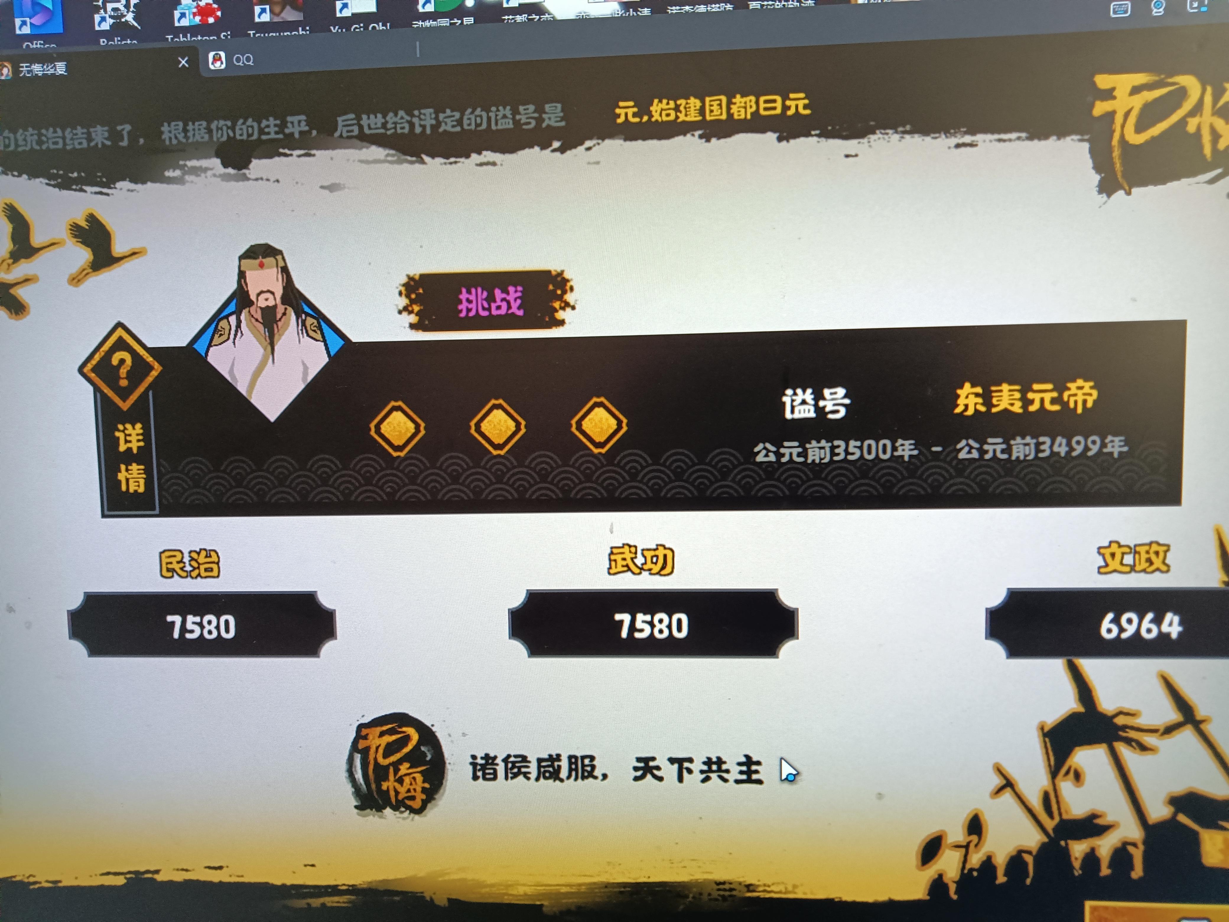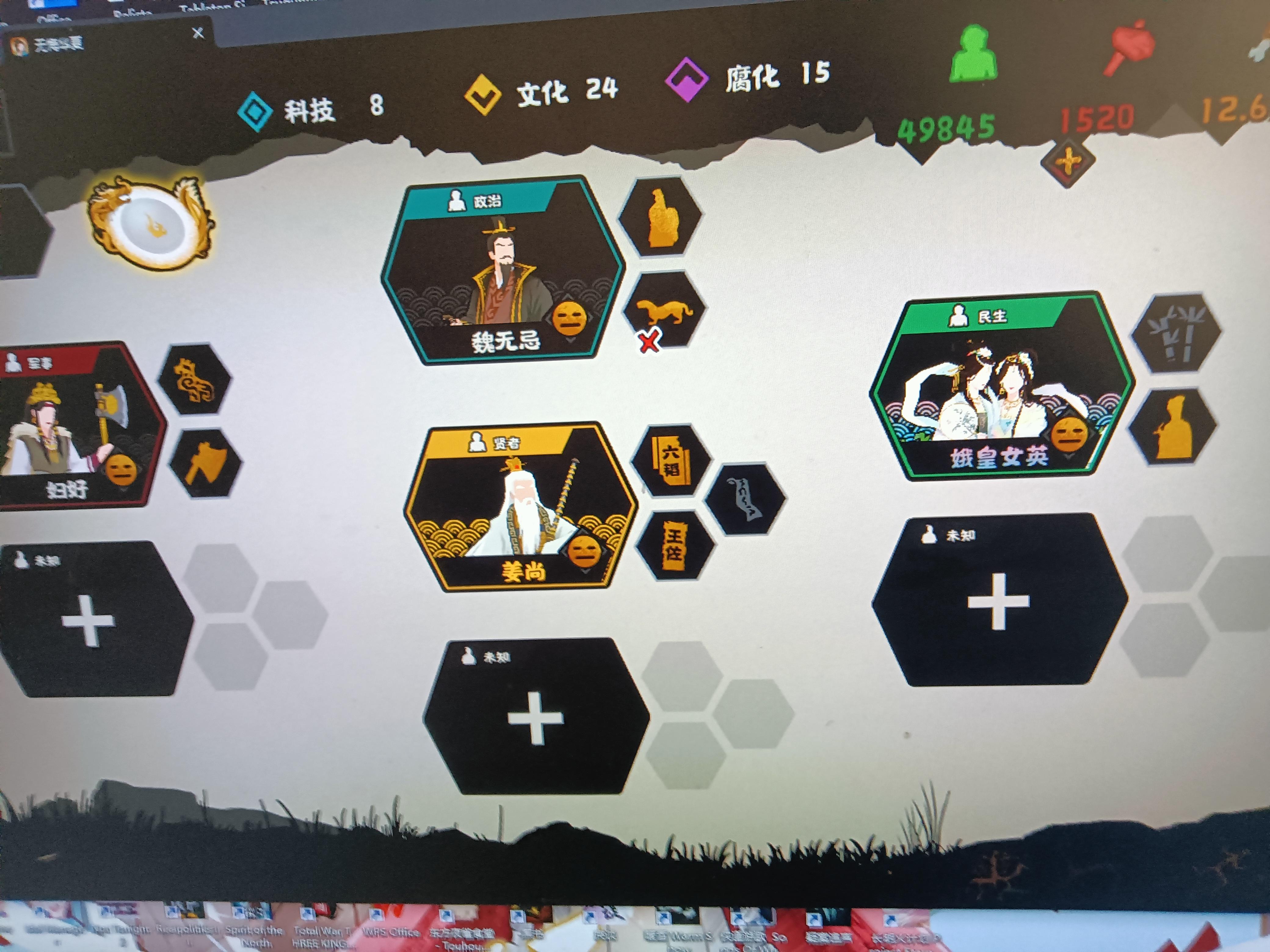 政治位:我们用五星人阶魏无忌,他的第一个礼贤可以提供30战力,并且还送五个野兽(其他时代是马),我们可以用这五个野兽点开妇好的主祭政策(妇好主祭的特资在三皇时代是5野兽)