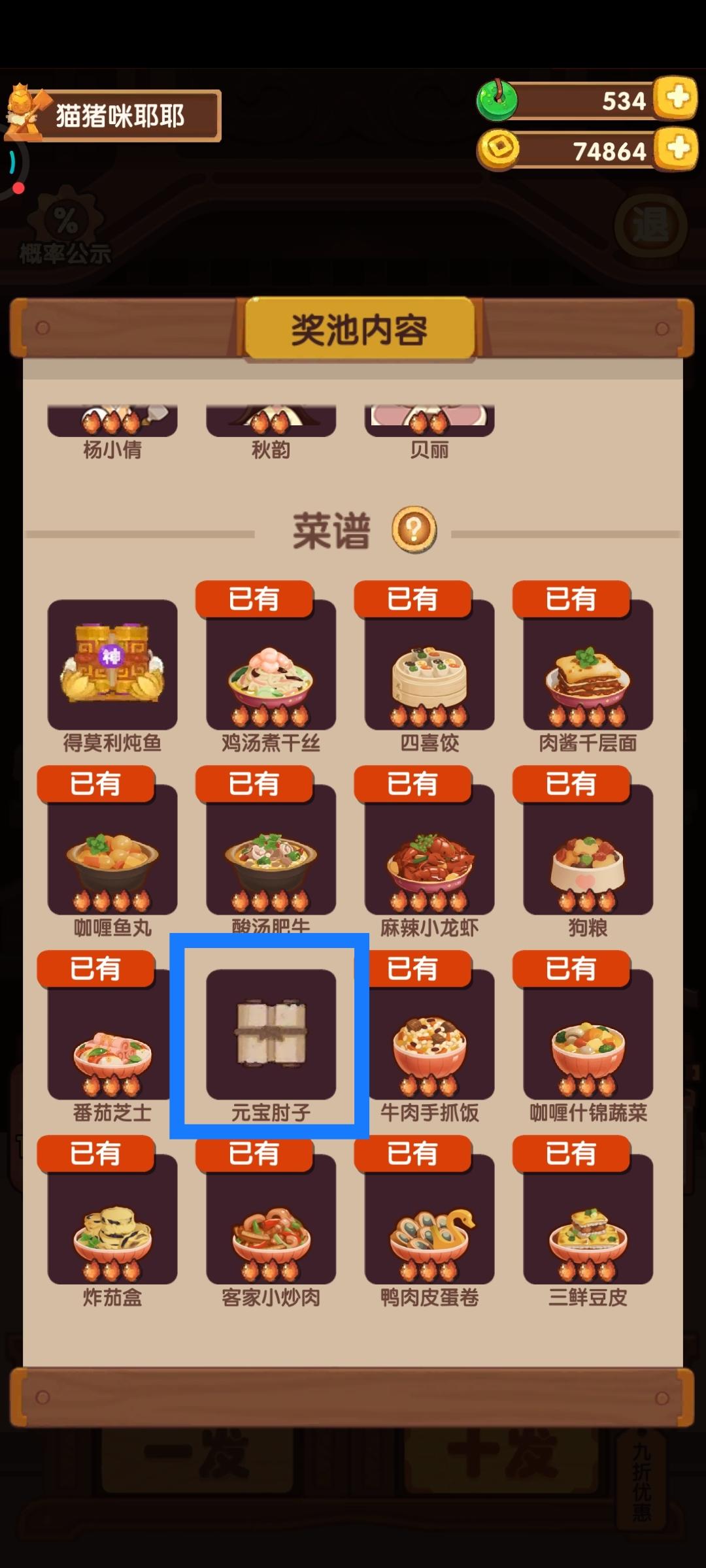 一圈都抽到了,就是成功越过元宝肘子!!气死俺了(发疯…)