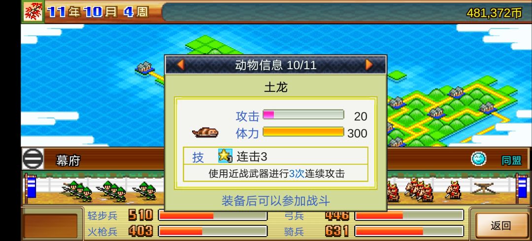 土龙:装备后加入步兵,唯一一个前排宠物,抗伤用,伤害不高,忍者战不建议使用。