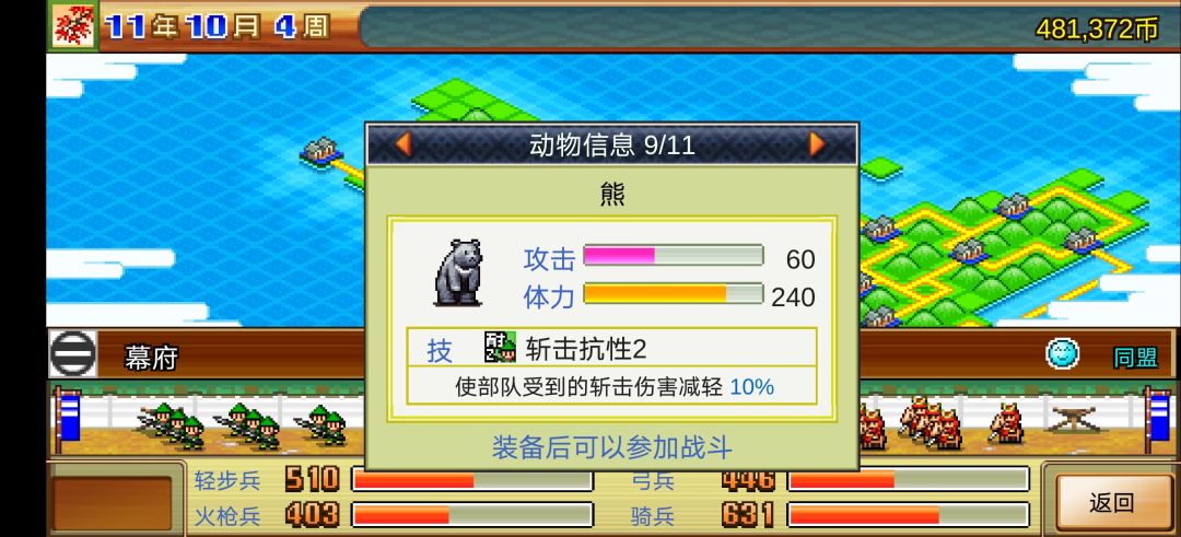 熊:装备后加入骑兵,中规中矩。