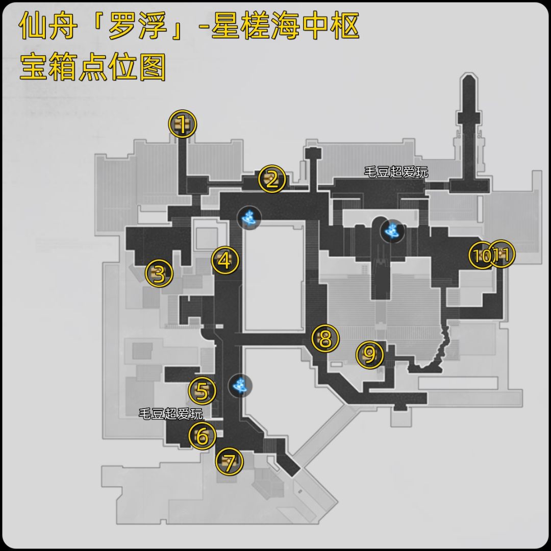 下图为仙舟罗浮-「星槎海中枢」的宝箱点位图,请大家“坐稳扶好”,跟着毛豆按照数字从小到大的顺序收集。
