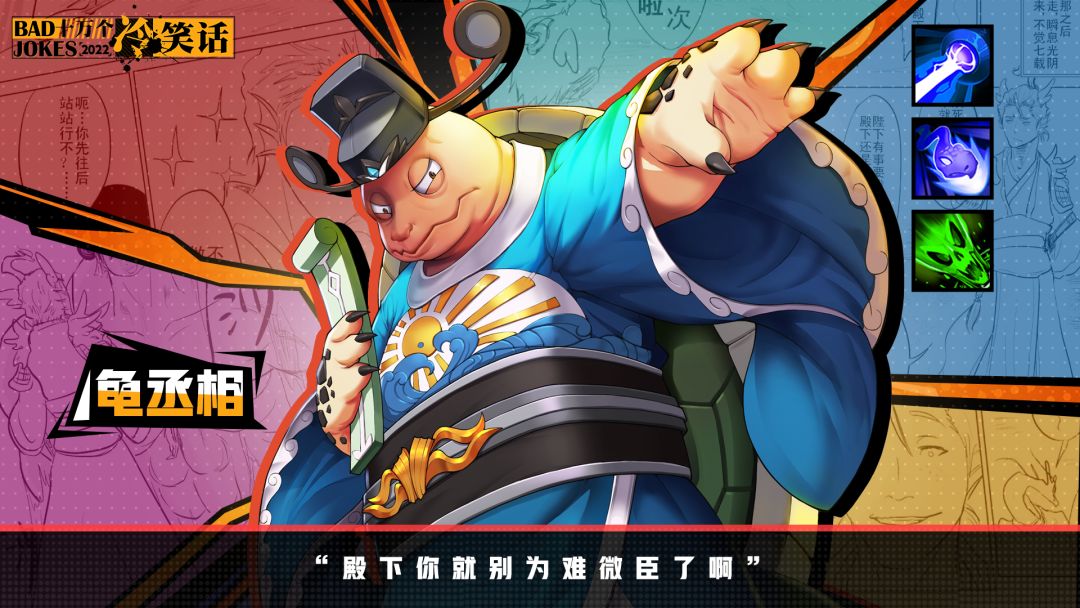 龟丞相的普攻【去吧水箭龟】可以对敌方单体造成100%的伤害。而他发动怒气技能【王/八头攻击】时,龟丞相缩进硬壳中,向前撞击,对一位敌人造成250%的伤害。其被动技能【龟龄高】,则是令他在被攻击时,提升自身3%的免伤。果然,壳壳可以为他带来最安心的保护呢~