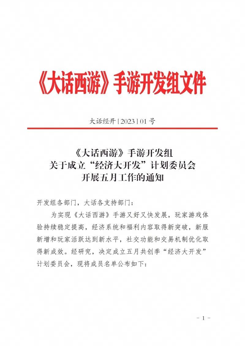 关于成立“经济大开发“计划委员会开展五月工作的通知