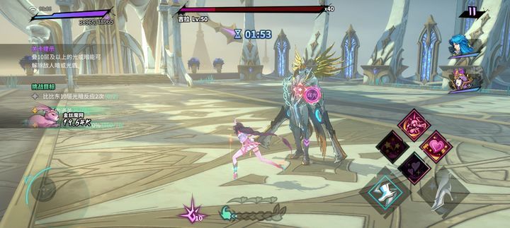 这关的暗盾需要10层光才能破,不过这里给的是满配小舞体验版,技能武器都是精炼满的,所以一个金丝魔网技能加蓄力主角技就能满10层光