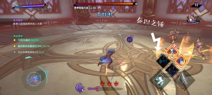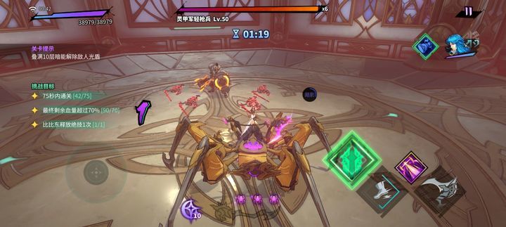 第一关没任何难度,比比东体验关,自动回能,绝技回复超快,唯一需要注意的是需要蓄力攻击三次,去完成三星条件